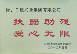 ·2012年5月,興業(yè)集團榮獲“扶弱助殘,愛心無限”獎狀