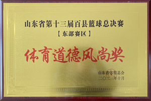 2021年10月,興業(yè)集團籃球隊榮譽“山東省第十三屆百縣籃球總決賽(東部賽區(qū))體育道德風尚獎