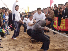2006年5月1日,第二屆運(yùn)動(dòng)會(huì)拔河比賽在萬(wàn)平口沙灘舉行。