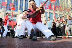 2007年5月1日,第三屆運(yùn)動(dòng)會(huì)拔河比賽在剛剛建成啟用的興業(yè)王府大街市民廣場(chǎng)舉行。