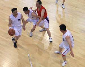 在比賽過(guò)程中各支代表隊(duì)都發(fā)揮出了極高的水平,為觀眾奉獻(xiàn)了一場(chǎng)場(chǎng)精彩的比賽。尤其在9月20日上午的交叉賽中,興業(yè)汽配代表隊(duì)與天泰鋼結(jié)構(gòu)代表隊(duì)勢(shì)均力敵,比賽中雙方比分交替上升,離結(jié)束還有不到20秒時(shí),汽配代表隊(duì)61:58領(lǐng)先3分并持有球權(quán),此時(shí)汽配隊(duì)員的心理感覺(jué)穩(wěn)操勝券,一個(gè)不經(jīng)意的走步把球權(quán)送給對(duì)手,離結(jié)束不到2秒,鋼構(gòu)中鋒馬沖順勢(shì)強(qiáng)攻,一記精準(zhǔn)的3分遠(yuǎn)投, 將比分追成61平,使比賽拖進(jìn)加時(shí)。在加時(shí)賽中,汽配中鋒崔冰連續(xù)中投得手,興業(yè)汽配代表隊(duì)最終以73:65的比分完勝鋼構(gòu),躋身本屆籃球比賽的冠、亞軍決賽。因?yàn)樘鞖庠颍?月20日下午的半決賽、決賽和驥翼組籃球表演賽改在日照一中室內(nèi)籃球場(chǎng)舉行。半決賽、決賽異常激烈,特別是在興發(fā)和汽配之間進(jìn)行的決賽,展示了興業(yè)集團(tuán)籃球的實(shí)力和水平,興發(fā)隊(duì)員們一次次嫻熟的配合,一個(gè)個(gè)精彩的扣籃,不時(shí)獲得現(xiàn)場(chǎng)觀眾的陣陣喝彩和掌聲。集團(tuán)驥翼隊(duì)與興發(fā)驥翼隊(duì)的籃球表演賽同樣上演了群雄大戰(zhàn),集團(tuán)驥翼隊(duì)在王建國(guó)總經(jīng)理帶領(lǐng)下,抗拒了體力不足,堅(jiān)持打滿全場(chǎng),最終以44:44的比分和興發(fā)驥翼隊(duì)握手言和(因?qū)俦硌葙惒辉偌訒r(shí)),也宣告興業(yè)集團(tuán)第五屆職工運(yùn)動(dòng)會(huì)籃球比賽鳴金收兵。